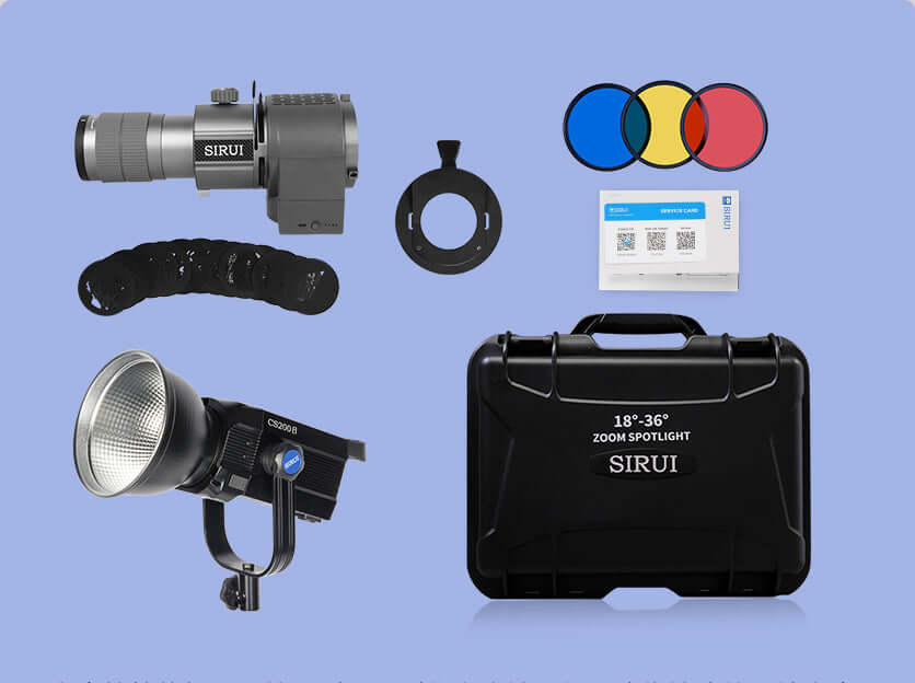 عدسة هذا البروجيكتور تعمل بشكل جيد مع ضوء COB تحت 200 واط. يُقترح تركيب هذه العدسة على مصباح SIRUI Blaze Series Monolight أو CS Series Monolight لإنشاء صور رائعة.