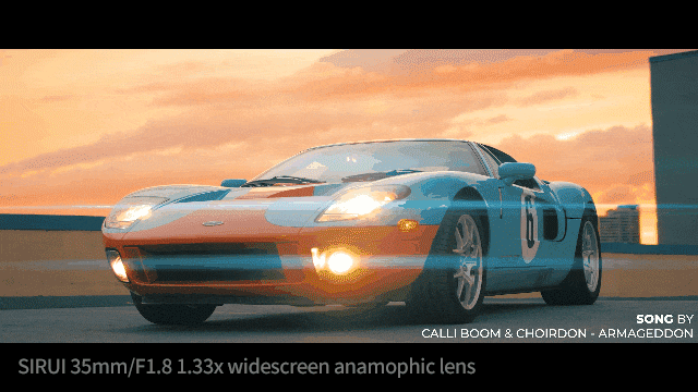 Dank der einzigartigen Eigenschaften von Breitbild-Anamorphot-Objektiven erscheinen beim Fotografieren starker Lichtquellen horizontal lange Streifen von Blendlicht. Besonders beim Fotografieren eines schnell fahrenden Autos treibt die Bewegung der Scheinwerfer im Bild auch die blendende Veränderung des Gegenlicht-Zeichnungseffekts voran. Verzichten Sie auf die Nachbearbeitungseffekte, und Sie können auch problemlos Bilder des Autos mit einem Science-Fiction-Gefühl aufnehmen.