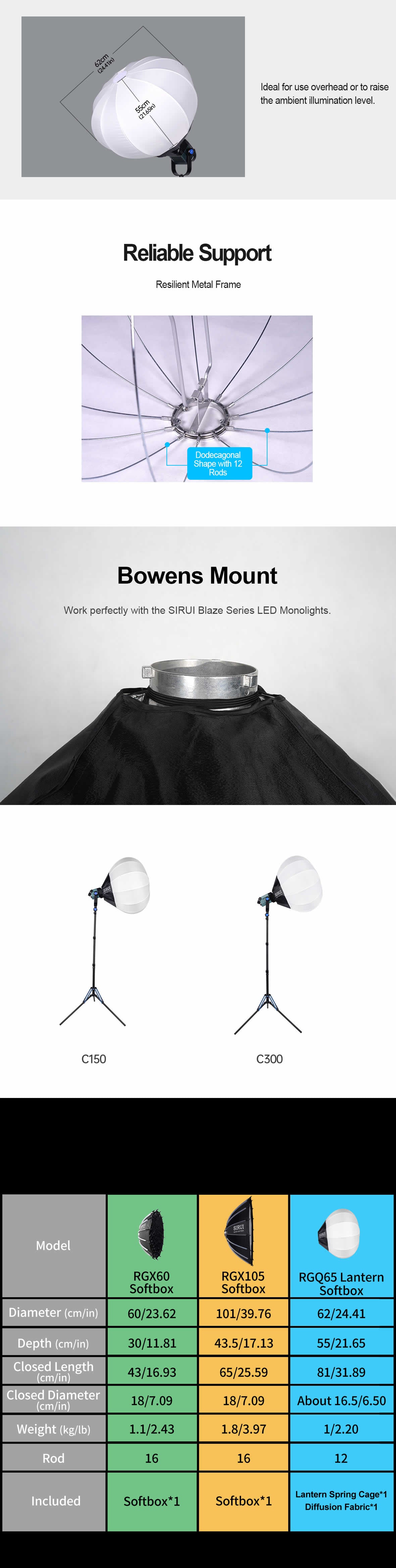 Avec une monture Bowens, cette lampe peut fonctionner avec une grande variété d'accessoires et de modificateurs pour une polyvalence accrue.