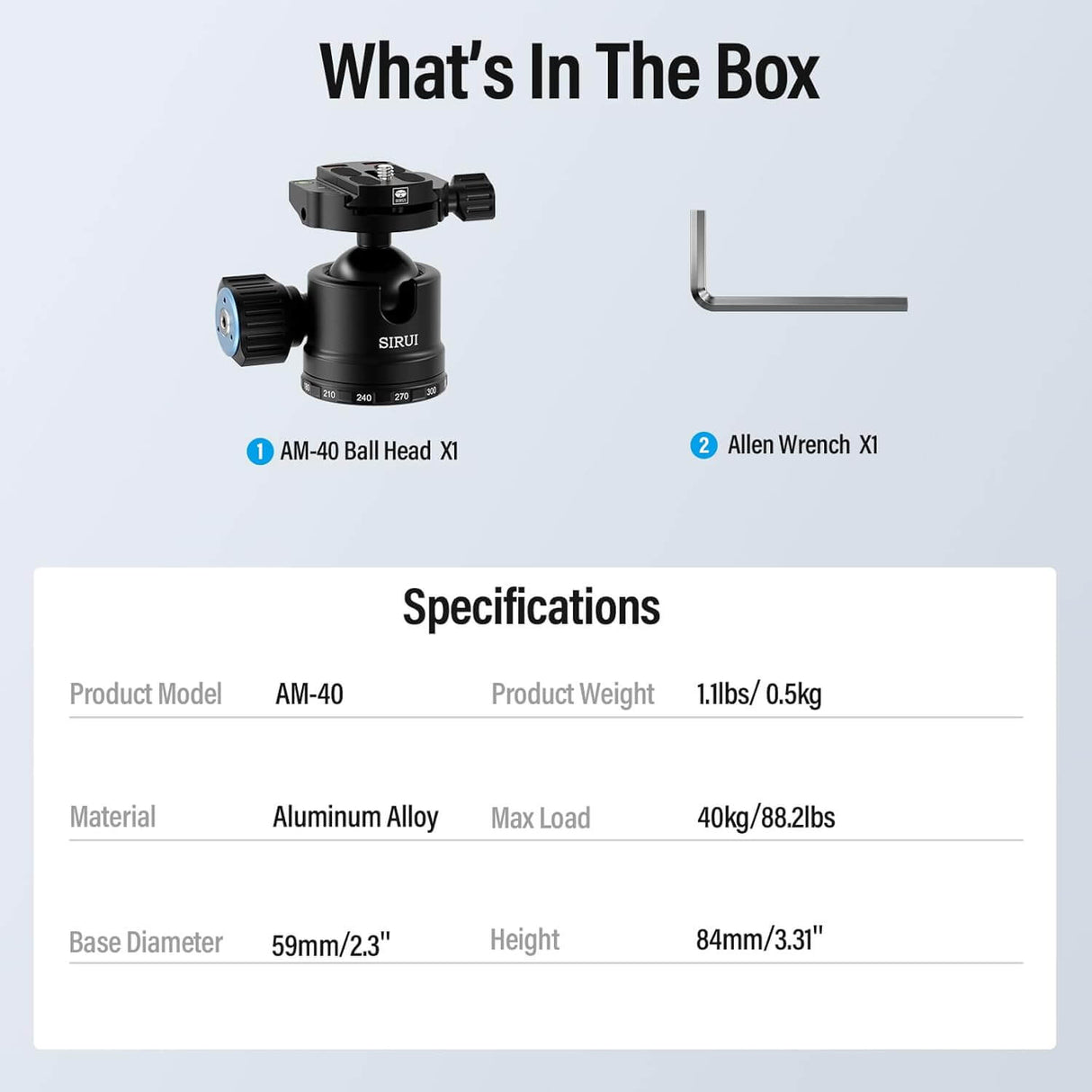 SIRUI AM-40 Testa a Sfera Bassa Profilo Heavy Duty