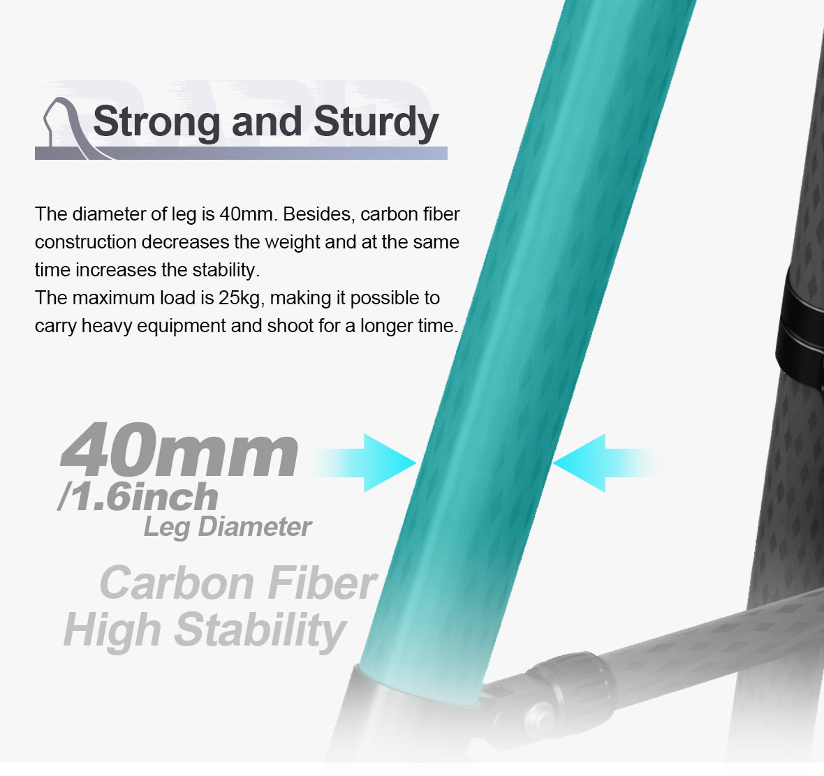 중간 스프레더는 전체 지지 시스템의 안정성을 높이기 위해 추가할 수 있습니다. 잠금 노브를 통해 스프레더의 길이를 늘리거나 줄여 다리 각도를 미세 조정할 수 있습니다.