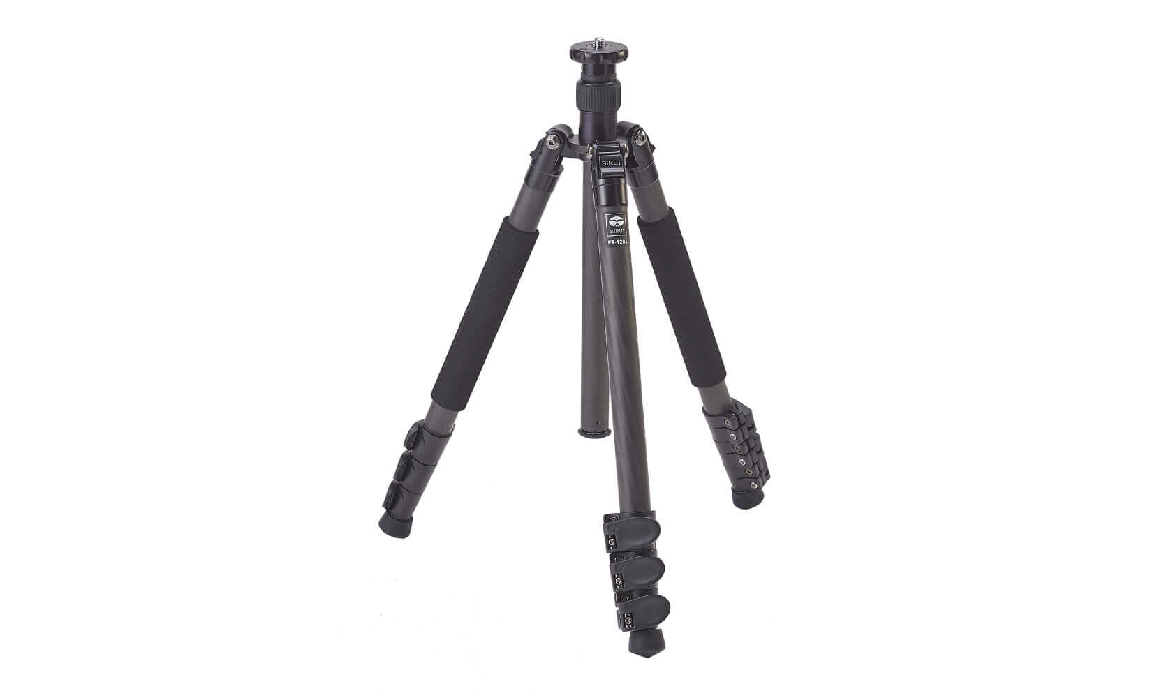TheET-1204 Travel Carbon Fiber TripodfromSiruiis a 4-section support with a flip leg lock system that you can disengage to give you the ability to extend the legs along with the standard rapid center column to a maximum height of 55.1". With its three variable leg angles and independent leg spread, the tripod's legs can conform to uneven terrain; splaying the tripod's legs out and switching the standard center column to the included short column, the support can go to a minimum height of 5.1". The legs fold in the reverse to a compact 16.5" to travel with the tripod, and the rubber feet on the legs prevent the tripod from sliding on smooth and flat surfaces.